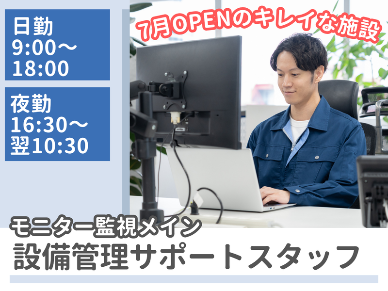 仕事内容 ⏩注目POINT  ̄ ̄ ̄ ̄ ̄ ̄ ✅先進的なDC施設! ✅メインはモニター監視! ✅設備管理系の資格のある方を募集! ✅実務経験はなくてもOK◎ ✅再雇用制度あり!65歳まで働けます! ✅昇給あり◎退職金制度も完備♬ ⏩業務内容  ̄ ̄ ̄ ̄ ̄ ̄ 千葉県印西市に誕生するDC施設での 施設管理に関わるお仕事です。 BMS/PMSのモニタリングおよび 巡回作業がメインになります。 ※研修は随時行います。 ━━━━━━━━━━━━━━━━━━ ⏩日勤・夜勤でしっかり稼げる!  ̄ ̄ ̄ ̄ ̄ ̄ ̄ ̄ ̄ ̄ ̄ ̄ ̄ ̄ ̄ 前職の経験・資格を活かせます! 毎月皆勤手当(4000円)の支給あり! ━━━━━━━━━━━━━━━━━━ ⏩BMS/PMSの監視業務経験者歓迎!  ̄ ̄ ̄ ̄ ̄ ̄ ̄ ̄ ̄ ̄ ̄ ̄ ̄ ̄ ̄ ̄ 業務手順やPC操作など、 イチからサポートしていくので まずは仕事の進め方を覚えましょう! 質問等も遠慮せずにどうぞ!