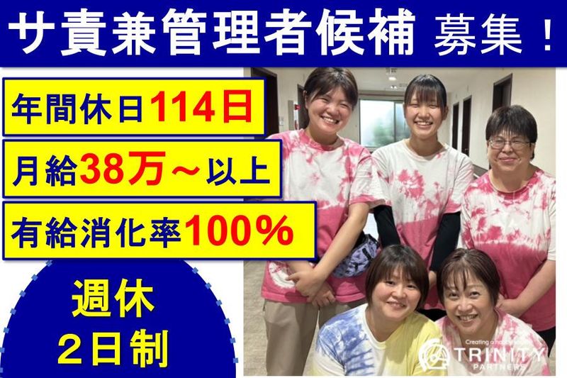有料老人ホームのサービス提供責任者 兼 管理者候補募集! ■高収入!(月給38万以上)■週休2日制(月8~9日)■年間休日114■賞与年2回