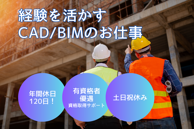 求めている人材 ★☆人柄重視の採用★☆ ⇒応募時に資格は不問です! ✅資格不問 ✅経験者の方大歓迎! ✅ブランクOK・少しだけの経験も大歓迎 ※男性の方活躍中! 資格不問! 【必須要件】 ・CADを使用した(建築・土木・設備・電気)施工図・製作図の修正または作成経験が3年以上ある方 ・AutoCAD、Jw-cad、Tfasなどの建設業界にて使用するCADの経験必須 ・BIM/CIMなどの3DCAD経験者歓迎 【歓迎要件】 ・Word、Excel、PowerPointの経験あり ・3DCADの経験あり \20代や30代の転職者が多数活躍しています/ \前職は多種多様!皆違って皆良い♪/