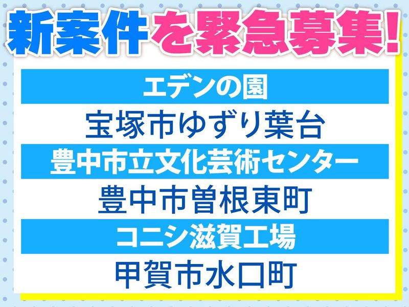 仕事内容 …*…*…*…*…*…*…*…*…*… \✨ 急募!5~8名の募集 ✨/ ✅施設警備をお願いします! ✅短期or長期で働き方が選べます! ✅日払い・週払いもOK!(規定あり) ✅月払いは、末締→20日払い ✅安心サポートで始められます …*…*…*…*…*…*…*…*…*… 豊中市立文化芸術センターで開催される コンサートや舞台・イベント会場にて、 来場されるお客様の安全を支える 警備業務をお任せします。 【具体的には】 ・出入管理 ・巡回 ・施錠解錠 等になります! 難しいことはなく、未経験の方も最初は 1:1で丁寧にお教えしますので安心♪ 現場に直行直帰OKなので、 家が近い方にとっては通勤もラクラク◎ 【活躍中のスタッフについて】 現在は 20代・30代・40代・50代・60代の 幅広いスタッフが中心に活躍中♪ 皆さん未経験から始めた方ばかりなので、 「難しそうで自分にできるか不安…」 といった方も安心してください! 大体1ヶ月くらいで1人前になれています。
