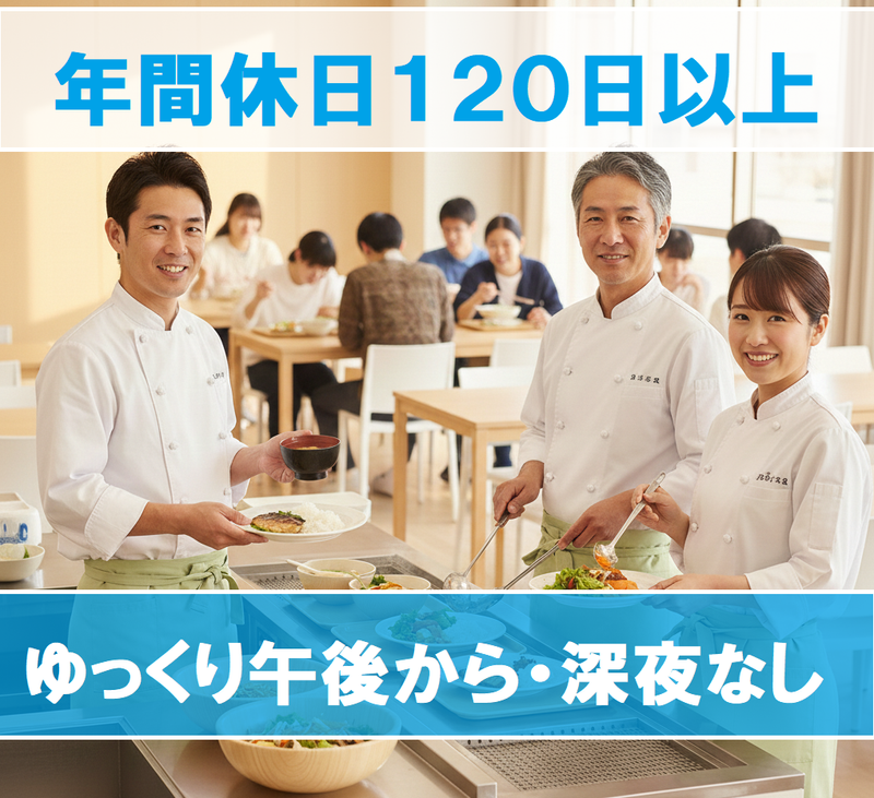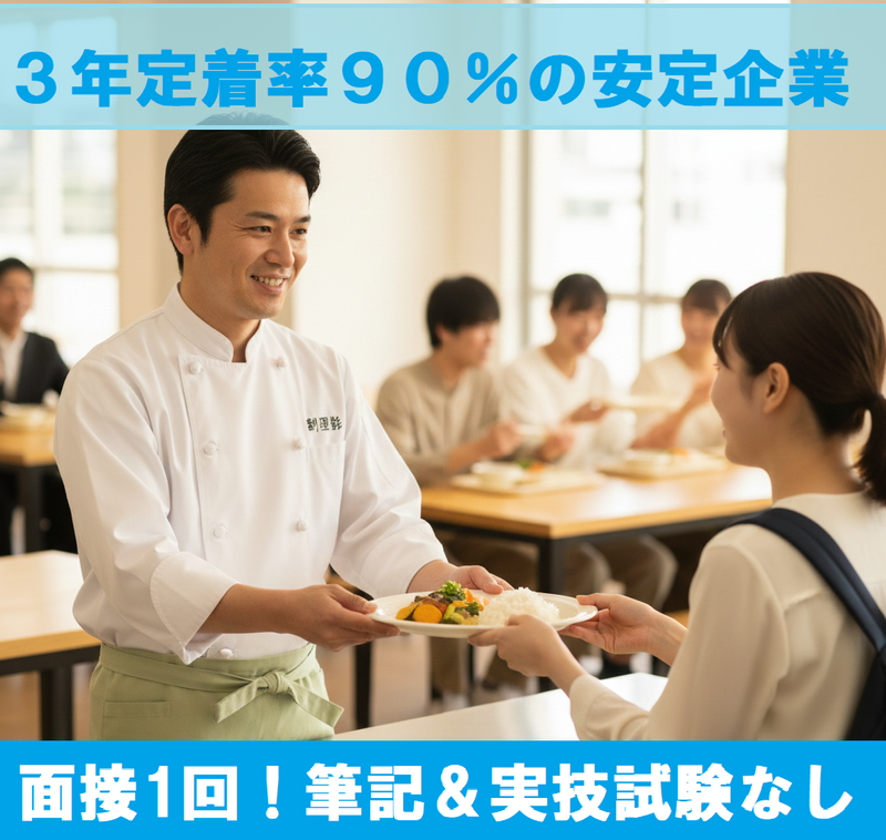 求めている人材 ⭐調理師資格をお持ちの方 ⭐調理実務経験ある方(年数不問/ジャンル不問) 飲食店のキッチン・保育園・学校給食・社員食堂・病院給食などの経験者歓迎 ●ブランクOK ●在職中の方の転職歓迎 ***✨ こんな方ぜひ ✨*** •経験を活かして年収アップしたい方 •安定企業で長く働きたい方 •休みが取りやすい職場をお探しの方