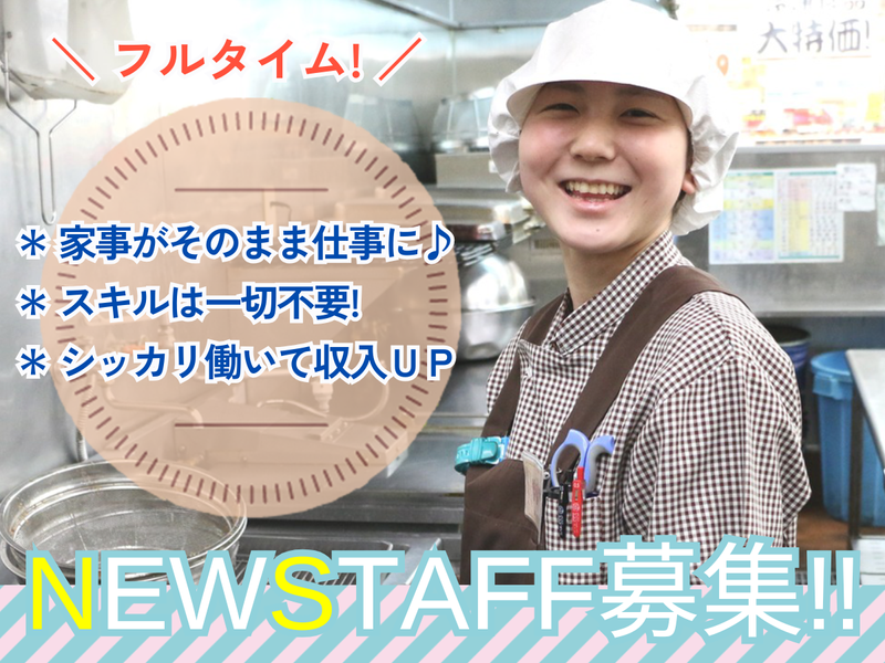 求めている人材 【応募条件】 *経験者歓迎 *未経験者歓迎 *学歴不問 *年齢不問 *性別不問 *ブランクOK! *主婦・主夫歓迎 *フリーター歓迎 *扶養内勤務歓迎 【歓迎条件】 ・コツコツと作業をしたい方 ・家庭で役立つスキルを身につけたい方 ・チームワークを大切にする方 ・安定した環境で働きたい方 ・調理のお仕事経験がある方 ・女性活躍中♪ ・40代、50代の主婦活躍中!