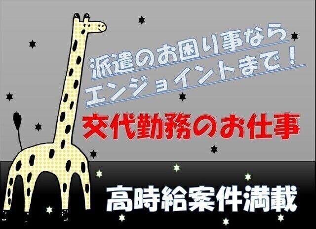 職種 機械オペレーター 雇用形態 派遣社員 仕事環境 *空調:要所にスポットクーラー *喫煙所:敷地内屋外にあり(灰皿はない為携帯用持参要) *更衣室:なし *個人ロッカー:あり *休憩室:有 *服装:制服 株式会社エンジョイントについて 〔日本一の二次産業が集まる滋賀で、地域の労働力を支える会社です〕 滋賀県を中心に、京都・大阪エリアまで幅広く お仕事をご用意! 製造・軽作業・物流・事務など、多様な職種から あなたの希望に合う職場を一緒に見つけます! 「すぐ働きたい」 「家から近い職場がいい」 「未経験でもできる仕事がいい」 等々、お気軽にご相談ください! あなたに合う職場、必ず一緒に見つけます!