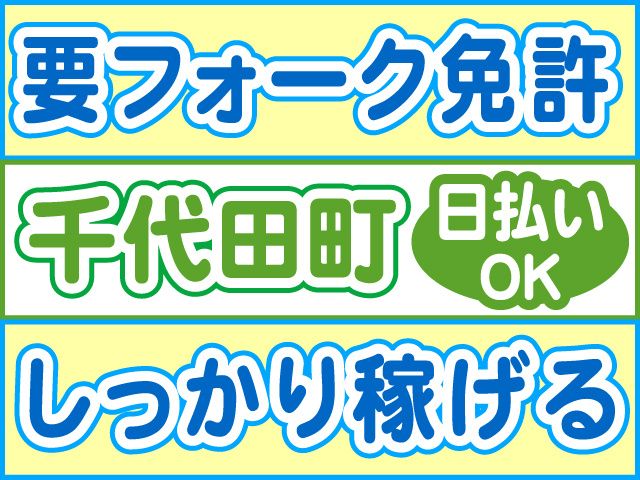 仕事内容 資格・経験が活かせるフォークリフト作業 ブランクOK、50代までの男女活躍中 【フォークリフトスタッフのポイント】 〇高時給1,750円 〇残業&深夜割増で稼げる 〇日勤固定休み 〇夏季休暇・GW・年末年始休暇あり 〇20代30代40代50代の男女活躍中 〇日払いOK(規定内) 〇履歴書不要 〇交通費支給(規定内) 【フォークリフトスタッフの仕事内容】 群馬県邑楽郡千代田町にある倉庫での フォークリフトオペレーターのお仕事 ・フォークリフトを使用した パッケージ製品の運搬 ・タッチパネルの確認 ・製品がレールの上をちゃんと流れているかを 確認するオペレーター業務 をお任せします 資格・経験が活かせる高時給案件です 少しでも気になったらお気軽にお問い合わせください! 職場見学も実施中(30分~1時間程度) 【勤務について】 〇日勤・夜勤の2交替制 〇日曜+1日の週休2日制 急な発熱・体調不良・冠婚葬祭など 突発的なお休みに柔軟に対応しております。 【こんな経験活かせます!】 下記経験者は前職活かせます。 〇長期アルバイト・パート 〇物流倉庫パート・アルバイト 〇フォークパート・アルバイト 〇仕分け・ピッキングパート・アルバイト 〇出荷準備、荷積み・下しパート・アルバイト 〇主婦・主夫パート・アルバイト 〇中高年パート 前職不問で採用しております。 ブランクOK、経験の浅い方もOK コーディネーター・定着支援のWサポート体制導入 「マイリク定着支援」導入企業! アンケートで職場の様子を確認し、 コーディネーター・定着支援担当が連携してサポート。 はじめての派遣でも安心して働けるよう迅速かつ 丁寧にサポート対応いたします。 ご不明な点はお気軽にお問い合わせください お電話でのご応募、ご質問も受付中! 株式会社ロフティー太田支店 TEL0800-222-6888(フリーダイヤル) お仕事情報など 採用ページはこちらから https://entori.jp/loftyota