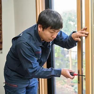窓ガラスやサッシ、ドアの取り付け工事スタッフ