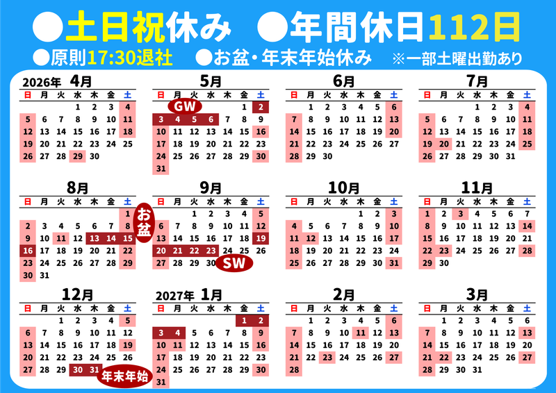 - 長期休暇あり