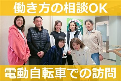 週3日・1日2時間からの勤務◎曜日固定の相談OK♪電動自転車訪問で普通自動車運転免許は不要◆扶養内OK♪小平駅徒歩2分【小平市・小平駅・訪問介護・介護職・日勤パート】
