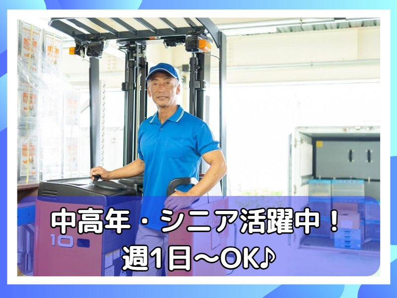 求めている人材 【必須条件】 要フォークリフト免許 【こんな方は大歓迎】 ◎免許はあるけど経験が浅い方 ◎ブランクのある方 ◎お久しぶりの仕事復帰 ◎ガッツリ稼ぎたい! ◎のちのちは正社員として 腰を据えて働きたい方 幅広い年齢層のスタッフが 活躍しています! お仕事は丁寧にお教えするので 経験が浅い方もご安心下さい♪