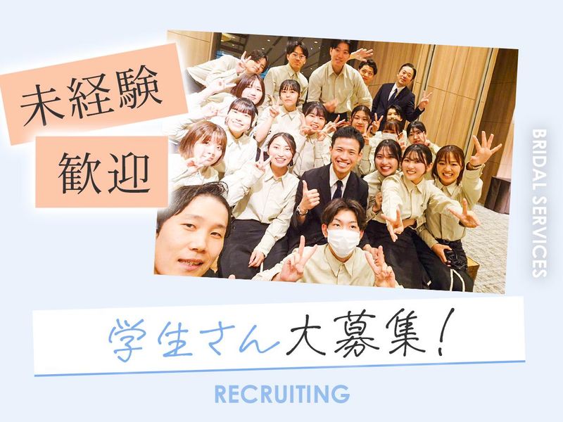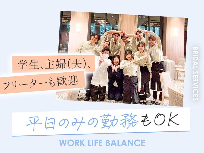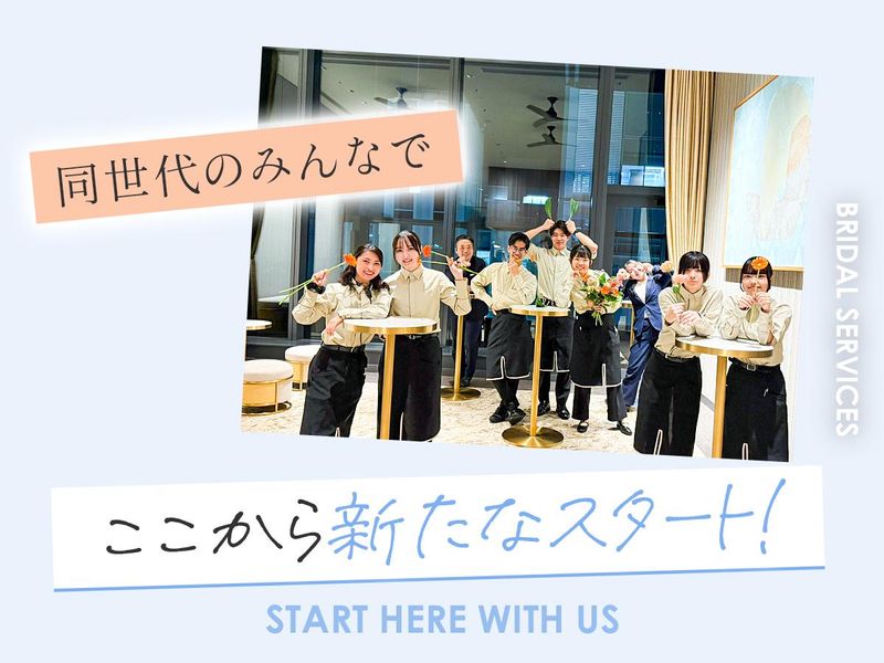 職場環境 <仲間と一緒に感動を創る!> パーティーやイベントなど お客様の幸せな1日のお手伝いをするお仕事です◎ 感動の演出でグッとくる感動の場面も…! そんな非日常の空間が味わえるのが魅力の仕事です!