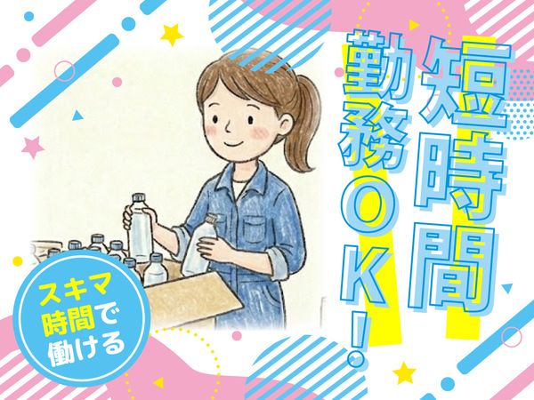 仕事内容 ★☆・・――――――――――――・・☆★ 1人で黙々作業ができ、体を動かしながら リズムよく楽しく働ける。 ★☆・・――――――――――――・・☆★ 【仕事内容】 \ フォロー体制万全!安心してお仕事できる環境です♪ / メーカーOEMやプライベート化粧品・食品等のプラスチック容器・キャップなどの製造をしています。 <主なお仕事> ・プラスチック容器の検査 ・検査済製品の箱詰め梱包作業 ※検査や作業等は細かな傷等をチェックするので視力が必要なお仕事です。 ※商品の箱詰め等で、重量が約5kg程度の箱等を持つ場合があります。 動きやすい服装でOK!作業しやすい格好で気楽にスタートできます。 空調完備の工場なので、一年中快適に働けます。 - ◆ 先輩社員(女性)より  ̄ ̄ ̄ ̄ ̄ ̄ ̄ ̄ ̄ ̄ ̄ ̄ ̄ あの見た事がある商品を製造しているんだ!と、 自分の手で作り上げていくことがやりがいに感じます。 先輩社員も丁寧に教えてくれる環境で、慣れてきたら 1人でコツコツ作業ができるので気楽に働くことができます! 。.。:+* ゚ ゚ *+:。.。:+* ゚ ゚ *+:。.。.。:+*゚ ゚ *+:。.。: 【 おすすめポイント 】 ❖専門スキル不要!未経験歓迎!❖ 学歴・職歴は一切問いません。主婦・主夫の方も大歓迎です。 20、30、40代のスタッフが多数在籍しています。 <ここがオシ!> ・子育て中のママも多数活躍中ですので、みんなで協力しあって フォローいたします! ・お子様の学校行事や急な体調不良には柔軟に対応いたします! ・冷暖房が完備されており、働く環境は快適です! ・未経験者でも丁寧な指導で安心してスタートでき、小さな成長も見逃さない職場です。 ❖週払いOK❖ 働いてもらった分は翌週すぐに週払いとして対応可能です。 月末まで待つことがないから、欲しいものもスグ買えます☆ ❖残業は原則なし!❖ プライベート重視の方は「残業なし」でも大丈夫! 。.。:+* ゚ ゚ *+:。.。:+* ゚ ゚ *+:。.。.。:+*゚ ゚ *+:。.。: