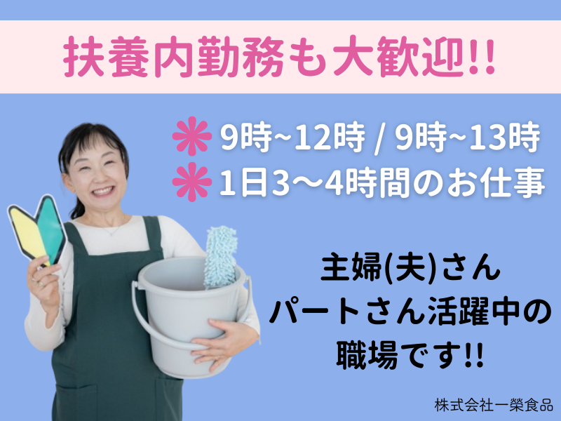 仕事内容 *‥‥*‥‥*‥‥*‥‥*‥‥*‥‥* \ 扶養内勤務歓迎!! / ⭐ お菓子工場の清掃スタッフ大募集 ⭐ *未経験OK *9時~12時 or 9時~13時の短時間 *週4日~週5日勤務 *土日祝休み 朝倉市・朝倉市近郊在住の主婦(夫)さん、 パートさん活躍中の職場です。 どの企業さんよりもシフト柔軟対応! 主婦(夫)さんの子育ても全力で応援します★ *‥‥*‥‥*‥‥*‥‥*‥‥*‥‥* (( お仕事内容 )) コンビニ・スーパー等でよく見かける おせんべいやどら焼き、珍味などの製造を行う工場の 清掃業務をお願いします。 お任せする場所は、 廊下、更衣室、休憩室、トイレなどの共有スペースです。 ⭐家事の延長でスタート! 掃除機をかけたり、鏡を拭いたり、ゴミをまとめたり、と 普段ご自宅でやっていることの「延長線」でできるお仕事です。 ⭐キレイが目に見える充実感! 休憩室や廊下が自分の手でピカピカになっていくのは、想像以上に気持ちがいいもの。 「いつもありがとう」と声をかけてもらえることも! ⭐難しい機械はありません! 基本は使い慣れた掃除機などの機械。 未経験の方でも、初日からすぐに馴染めるシンプルさが魅力です。 ⭐面倒な着替えなし! 私服の上にエプロンを付けるだけなので、準備も片付けも楽ちん♪ 動きやすい格好で通勤いただければと思います! ※エプロンもお好きなものをご用意ください。 ・。・。・。・。・。・。・。・。・。 在籍スタッフは、 朝倉市、及び朝倉市周辺在住の 主婦(夫)さんがほとんど。 パートで働くには最適な職場環境です! 未経験の方も大歓迎! 分からないことや困ったことがあれば 周りのスタッフがしっかりとサポートいたします! お気軽にお問い合わせください。