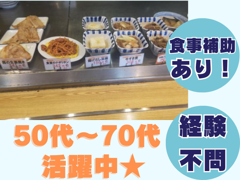 職場環境 地元の方に愛されている食堂で、 暖かい雰囲気のお店です。 晩ご飯のおかずを買って帰る スタッフも多くいます! #ミドル主婦さん多数在籍 #週5~6日通うお客様もいる食堂