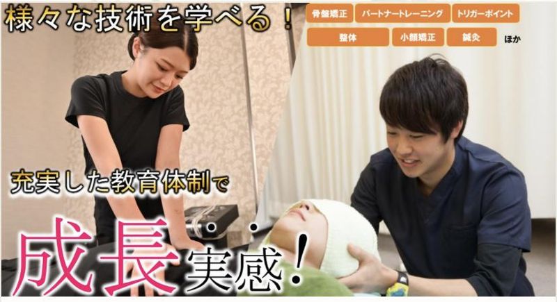 求めている人材 ※未経験・ブランク可 ※年齢不問 【歓迎条件】 ◆経験者歓迎 ♦学生歓迎 【おすすめの方】 ◎ 人と接することが好きな方 ◎ 会社の理念に共感していただける方 ◎ 普段の空いた時間を有効に使いたい方 ◎ 主婦(夫)やお子さんのいらっしゃる方も歓迎! 色々書きましたが、人柄重視で採用しています。 当院では開院した当初から「健康だけでなく美容含めて社会へ提供していく」という想いを持って、地域の皆様に施術を提供してきました! そのため、この想いに共感していただける方を積極的に採用しています。 地域トップクラスの治療家になりたい!!そんな想いを持った方を全力でサポートしますので、 地域に根差した整骨院を目指して一緒に働いてみませんか?