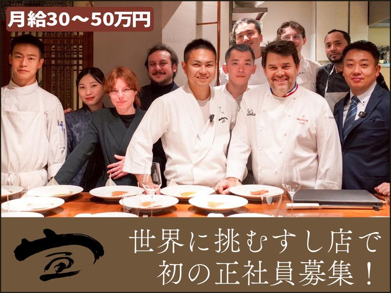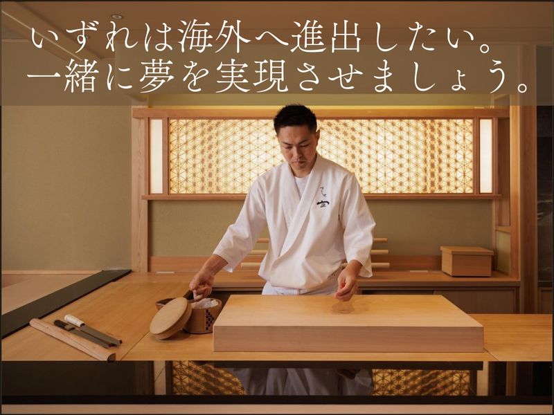 仕事内容 ★はじめて正社員を募集★ ▛▝▝▝▝▝▝▝▝▝▝▝▝▝▝ ▜ ■応募資格は、とにかく素直、 ■料理が好きで、学びたい方! ▶▶▶それだけです!!▶▶▶ ▙ ▖▖▖▖▖▖▖▖▖▖▖▖▖▖▟ 「すしや宣」は、 広尾の閑静な街並みに佇むお店。 オープンから4年、 芸能人や経営者が集い、 口コミと紹介で予約困難なほど 人気のお店になりました。 そしてこの度、 初めての正社員を募集します。 一から丁寧に学びたい方には またとない機会です! \\ // // 大将(42歳)の考えは、 優しく教える”育成方針”! 自身の修業時代、厳しく辛い 想いもたくさん経験してきたから、 自分の店では絶対同じ想いを させないと誓いました。 優しく丁寧に伝えるので、 安心してくださいね! // // \\ +++- ■チャンスをものにする! ご縁で大波に乗ってきました。 -+++ はじめまして。大将の皆川です。 先日、ご縁があり、お店を1週間ほど お休みして、フランスに行ってきました。 フランスの星付きレストランで、 コラボディナーイベントに参加させて もらうことになったのです! 私が主体となり、現地でコース料理を 振る舞ってきました。 なんというチャンス! 一流シェフからフランス料理を教わる 機会もあり、この上ない贅沢な 経験ができました。 そして少し前にも、スペインへ。 日本食が今、どのように広がっているのか 実際に現地の和食レストランを訪問。 今後、「すしや宣」は世界に進出して いきたいので色々と勉強してきました。 実は、フランスもスペインも お店に来ていただいたお客様からの ご縁です。 1週間もお店を閉めるのには大きな 勇気が必要でしたが、勝負しました。 人生の波に乗ってチャンスを掴む。 私にとって、チャンスはいつも “ご縁”から。そのご縁が、今、 海外へと橋を架けてくれました。 +++- ■感謝で溢れる良い循環を作りたい! -+++ フランスのレストランで強く感じたこと。 キッチンでもホールでも、全員が前のめり。 まるでブロードウェイの オーディションのように、 「私がやります」「僕の出番です」と、 誰もが主役として仕事に挑んでいました。 理由を聞いて驚きました。 フランスでは、雇用者は従業員の 給与と同額を国に納める法律があり、 1人採用するだけでも莫大な投資になる。 従業員はそれを理解し、 オーナーへの感謝を当たり前に 感じているのです。 その姿を見て、私は思いました。 私たちの国は、まだ甘いかもしれない。 だからこそ、決めました。 感謝が循環する職場を、私たちがつくる。 働くすべての人が、 「この店で良かった」と 胸を張れる環境を。 +++- ■次のステージへ進む、 すしや宣の正社員募集 -+++ ひとりで守ってきた店を、 これからは仲間と攻める店にしたい。 今、私たちは新しいステージに立っています。 とは言え、豊富な経験を 求めているわけではありません。 経験や肩書きよりも、日々の仕事に 向き合う姿勢を大切にしたい。 料理が好きな気持ちがあれば、 私がじっくり育てるつもりです。 すし職人というと、厳しい修業や 長い下積みを想像されるかもしれませんが、 すしや宣の現場は少し違います。 包丁の持ち方や魚の扱い方、 カウンター越しの所作まで、 大将が一つずつ目の前で教えます。 わからないまま任せることはなく、 できることが増えた分だけ、 少しずつ仕事の幅が広がっていく。 そんな積み重ねを大切にしていきます。 「素直に聞いて、やってみる」 ことを大切にできる方であれば、 これまでの経験は問いません。 小さな店だからこそ、 距離が近く、学びも早い。 すし職人としての一歩を踏み出してみませんか。