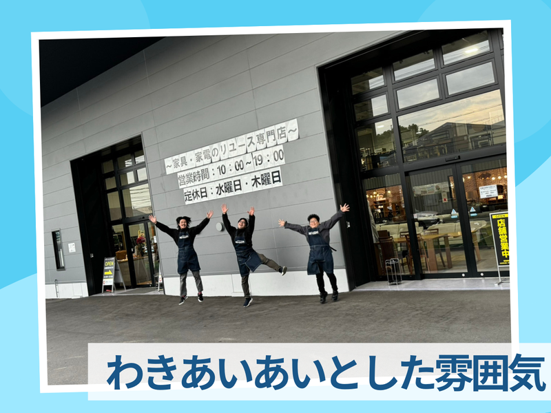 仕事内容 \ 適度に体を動かし、1日あっという間!/ ✅ 9:00~19:00/1日まとまって働ける ✅ シフトが削られにくく、安定収入 ✅ 作業完了時の達成感が大きい ✅ 単純作業だけで終わらないから飽きない ✅ 移動中は会話も多く、雰囲気良好! ✅ お昼はラーメン屋巡り等の楽しみも◎ 家具家電など生活に身近な商品を扱うため 【 商品知識・運搬スキル・体力 】が 自然と身につきます✨ ―――――――――――――――― 【 仕事内容 】 ―――――――――――――――― お客様宅へお伺いし、 家具・家電の回収・配送補助を行います。 扱うのは… 冷蔵庫・洗濯機・TV・ソファ・食器棚など ⏩ 2~3人のチーム制で作業 (無理な一人作業なし) ⏩ 名古屋市内中心/1日5~7件ほど ⏩ 移動中はルート案内・ 右左折の声掛けなどを担当 ⏩ 台車使用&応援体制あり 使用するトラックはゲート付き車両◎ 重い荷物もラクラクです! ※ゲート…重い荷物を上げ下げできる装備 重量物もありますが、 無理な場合は他便の応援が入るため 安全第一で作業します。 ―――――――――――――――― 【 運転免許不要!未経験歓迎! 】 ―――――――――――――――― ドライバー・配達・配送経験が ない方も大歓迎! 和気あいあいとした雰囲気& ベテラン社員が丁寧にサポートするので 未経験の方もスグ馴染めますよ♪ ⭐ 運転免許がなくてもスタート可! ⭐ 「お試し短期」からもOK! ⭐ アルバイト・パートから 正社員になった方も多数います! ―――――――――――――――― 【 キャリアアップも可能! 】 ―――――――――――――――― \✨ 評価に応じて昇給あり!✨/ 最大時給1500円まで昇給可能!! ⭐ 査定スタッフへ成長し、 将来は営業職で高時給も可能! ⭐ 営業に興味がある方も歓迎! ―――――――――――――――― 【 こんな方にオススメ! 】 ―――――――――――――――― ✅ 体を動かす仕事が好き ✅ チームで協力して働きたい ✅ 1日しっかり働いて稼ぎたい ✅ 将来は査定・営業にも挑戦したい ―――――――――――――――― 【 当社について 】 ―――――――――――――――― ●家具家電などのリユース品の販売 (リサイクルショップ「Reroom」の運営) ●不用品回収お手伝い及びリユース品買取り ●運搬配送業務