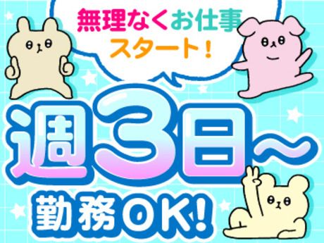 職場環境 【従業員構成】 ・主婦さん/主夫さん歓迎! ・フリーターさん歓迎! ・20~50代の男女ともに活躍中! 【職場の雰囲気】 落ち着いた職場 協調性がある 業務外交流少ない 立ち仕事 アットホーム お客様との対話は少ない 力仕事が少ない 自分の都合に合わせやすい 知識、経験不要