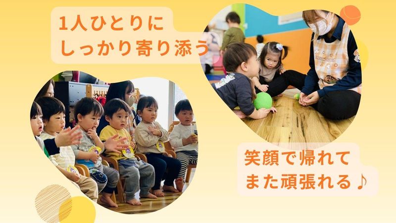 職場環境 職員10名、20代〜40代のスタッフが活躍中です。少人数の園だからこそ職員同士の距離が近く、困った時にはすぐに相談しやすいあたたかな雰囲気があります。保育士としっかり連携しながら、子どもたちにとって安心できる環境づくりを行っているので抱え込まずに働けます。 喫煙所:なし(敷地内全て禁煙)