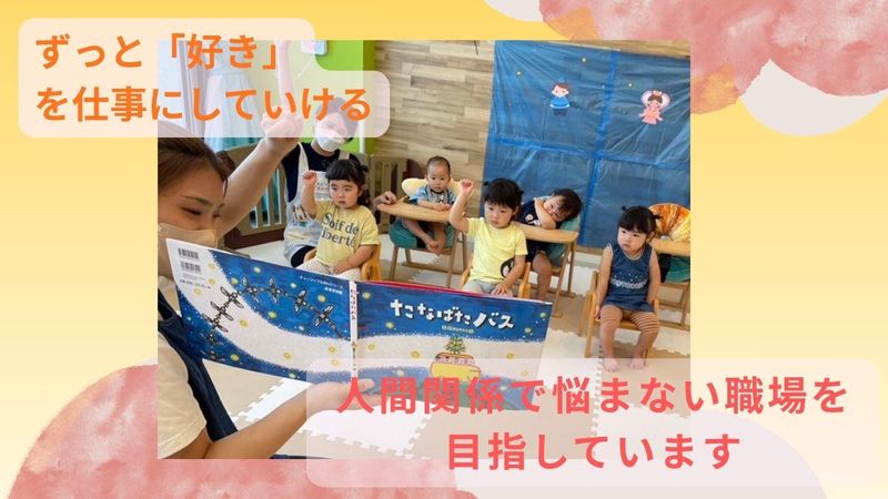 求めている人材 【必須】 正看護師または准看護師資格をお持ちの方 【こんな方に向いています】 ✅病院以外の職場で、看護師資格を活かしたい方 ✅子どもと関わる仕事に興味がある方 ✅一人ひとりと丁寧に向き合える環境で働きたい方 ✅夜勤のない働き方に切り替えたい方 ✅土日祝休み中心で、私生活も大切にしたい方 ✅ブランクがあっても復職しやすい職場を探している方 【歓迎】 保育園勤務の経験がある方 小児科勤務の経験がある方 ブランクのある方 保育園未経験の方も歓迎します