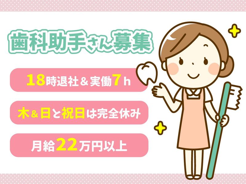 仕事内容 【おすすめポイント】 ✅ 18時退社&実働7時間 ✅ 木・日完全休み+祝日休み ✅祝日の木曜振替診療なし♪ ✅ 年間休日120日以上 ✅ 賞与あり(年2回)&長期休暇あり ✅ 未経験から医療業界デビューを応援 ✅ 第二新卒・異業種転職歓迎 ✅ 産休・育休実績ありで長く働ける環境 *-*-*-*-*-*-*-*-*-*-*-*-* 未経験大歓迎!とはいえ 医療系が初めてだと不安ですよね。 でも、当院なら大丈夫◎ 最初は先輩の仕事を見ながらメモを取り、 その後は治療に使うセメントを練ったりなど 無理なくステップアップ! 覚えることは少なくないですが、 いつも親身に相談に乗ってくれ、 ときには笑わせてもくれる 優しい先輩たちがいるのでご安心を! 一生使える知識とスキルを ここで手に入れませんか? *-*-*-*-*-*-*-*-*-*-*-*-*-* <仕事内容> ・受付や患者様のご案内 ・器具の準備・消毒、診療サポート ・院内清掃など ※未経験OK!先輩が丁寧にサポートします \女性が長く働ける職場環境/ 有給消化率100パーセント& 7日以上の長期休暇あり♪ 現在20代~40代のスタッフが活躍中! 産休・育休実績もあるので結婚・出産等で ライフステージが変わっても長く働ける 環境が整っています♪ 家庭の急な用事や、お子様の体調不良なども スタッフ同士協力し合って対応しています。 人間関係の良さもありスタッフも定着率も 抜群!9年勤務しているスタッフもいます。 \昼休みの過ごし方もいろいろ/ スタッフルームでみんなで雑談しながら お昼を食べたり、 近所から通うスタッフは一時帰宅して 家事をサッと済ませたり、 みんなそれぞれ上手く使いながら リフレッシュしたり 家事と両立させています。 \ネイルOK/ 常識の範囲内であればネイルもOK♪ 髪型・髪色も自由なのでおしゃれも 楽しみながら働けます♪