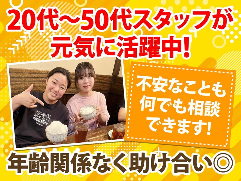 仕事内容 ★週2~5日・1日4時間〜8時間OK ★学校や家庭の事情にも理解ある職場♪ ★美味しいまかないあり!《写真必見!》 ★未経験も大歓迎!みんな初めは未経験◎ 当店のホール業務をお任せいたします! ========== ≪具体的なお仕事は?≫ ========== ・お客様のご案内 ・注文取り ・配膳 ・片付け ・レジ など ========= ≪未経験も安心◎≫ ========= 特別なスキルがいる難しい業務はないため、 飲食経験がない方でも安心して働き始める ことができます◎ 気さくで話しやすい先輩たちが丁寧に 教えて行くので、わからないことがあれば、 気軽に質問してくださいね! ================ ≪生活スタイル合わせて勤務可能≫ ================ 週2日~1日4時間~勤務できるので、 保育園の送迎や学校・部活など ライフスタイルに合わせて働けます◎ もちろん週5日のレギュラー勤務も大歓迎! 社員を目指して、勉強しにくるスタッフも。 柔軟な働き方に対応しているので、 面接の際にご相談くださいね!