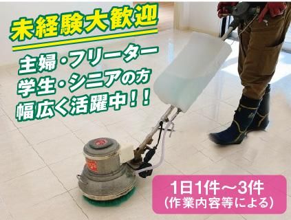 求めている人材 ◎未経験の方も大歓迎♪ 丁寧な研修制度充実♪ (未経験~1年でプロの清掃人) ◎清掃業務の経験ある方尚歓迎♪ (中高年・シニア世代活躍中) ◎普通自動車免許ある方尚歓迎♪ ◎免許のお持ちでない方も大歓迎! <幅広く大歓迎です> ◆男女不問!主婦・学生 フリーター・シニアの方活躍中♪ ◆18歳~20代・30代・40代・50代・60代活躍中! ◆週1日~3日位で働きたい方! (平日のみ!土日祝日だけ等もOK) ◆週4日~5日フルタイムで稼ぎたい方! ◆Wワークで働きたい! 【ここもポイント】 自己裁量で現場を任されたい方! ◎業務請負契約も可能! (個人事業主として活躍可) ※詳細別途相談の上決定