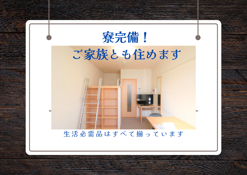 アピールポイント: ━━━━━━━━━━━━━━━ 寮・社宅について詳しくご紹介! ━━━V━━━━━━━━━━━ ・人数に応じた快適な部屋をご用意! (単身者はワンルーム、夫婦や家族もOK) ・家電や布団など必要な生活用品は会社がご用意! ・最低限の荷物だけで入居可 ・移動や引越しに必要な場合は営業車の貸出あり! 家族そろって新しい環境で活躍したい方、 単身赴任が不安な方にもおすすめです。 ご夫婦、カップルでの転居、引っ越しも大歓迎です! ━━━━━━━━━━━━ 稼ぎたい方、大歓迎! ━━━V━━━━━━━━ 「もっと稼ぎたい!」「経験を活かしたい!」 そんな方は週6日勤務もOK! 経験者は日給1万4,000円以上 【月収例】 26日勤務の場合 → 36万4,000円~ さらに随時昇給あり! ━━━━━━━━━━━━━━━━━ ご興味のある方はぜひこちらまで! ━━━V━━━━━━━━━━━━━ < 全国から応募OK! > 072-643-8034/山田 までお電話ください。 土日祝などでつながらない場合は 留守電にメッセージをお願いします! ※月~金 9時~17時まで