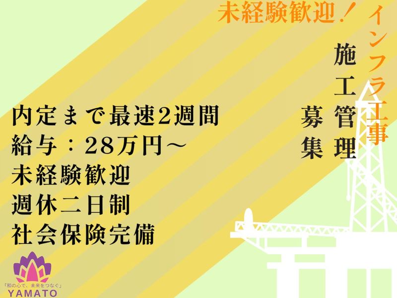 仕事内容 路上工事における施工管理補助として以下の業務と担当していただきます。 業務内容:安全 品質 工程 環境管理の補助業務 工程管理【スケジュール、施工手順、施工手段の管理】 品質管理【強度、材料、構造の管理】 安全管理【作業員の災害防止、公害防止などの管理】 各種検査対応や検査の立会い竣工書類作成 行政の工事がメインとなる為、書類作成が主になります。 施工管理の業務が未経験で分からない事が多い中でも やる気を持って一緒にやり遂げる方を募集しております。 ※通勤時間を考慮し、本社に出社せずに、直接現場まで直行直帰する場合がございます。