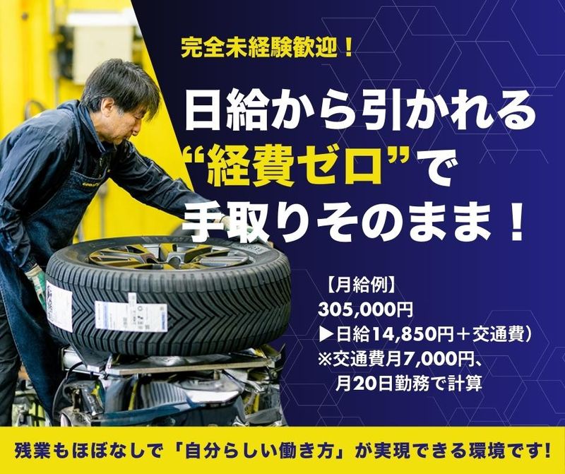 仕事内容 大手自動車会社の案件で、タイヤ交換スタッフとしてタイヤの運送&交換作業を担当いただきます! |業務内容| ・タイヤの積み込み ※タイヤ1つあたりの重さは大きめの電子レンジ1つ分です ・固定ルートでの配送 ※午前に2~3件程度 ・配送先でのタイヤ交換作業 ・その他サポート ・簡単な事務作業 など 普通自動車免許を2017年3月12日よりも前に取得された方は、特別な免許なしでOK!未経験からスタートした先輩がたくさんいるので、安心してスタートできる環境です。 作業を覚えたら、独り立ち!20代・30代といった若手層から50代・60代のミドルまで幅広く活躍しています。 ー ✨比べてください!その働き方、もったいないかも?✨ ▼一般的な宅配業務委託(例) ・日給:20,000円 ・労働時間:10~12時間 ・経費:自己負担 ・手取り(概算):約16,000円 ▼✅ オーシャンズのタイヤスタッフ ・日給:14,850円 ・労働時間:7.5時間 ・経費:会社負担(ゼロ!) ・手取り:14,850円 まるごと! ※月に20日働いたら月給307,000円(交通費7,000円計算) 交通費も全額支給+ガソリン代などの経費や自分の車も必要ナシ! 「時間あたりの収入」で考えると・・・いかがでしょうか? もしあなたが今、他の業務委託ドライバーとして働いているなら、一度立ち止まって考えてみてください。高い日給から、車両経費、ガソリン代、保険料が引かれ、長時間の労働…。本当に、その働き方は「割に合って」いますか? オーシャンズは、あなたの頑張りを正当に評価し、「本当に稼げる」環境を用意しています! ー ⭐ 未経験から「手に職」を! 入社後は、空気充填士の資格取得を会社が全額サポート! 一生モノのスキルを身につけ、将来的には独立を目指せる支援制度も整っています 。 ⭐ さらに稼ぎたい方も大歓迎! この仕事だけでも安定した収入が見込めますが、「もっと収入を増やしたい!」という意欲のある方には、空いた時間で他の配送案件をご紹介することも可能です。あなたの希望や体力に合わせて、柔軟に仕事量を調整できます。 ⭐ Instagramやってます oceans_keiban で検索! 働いているスタッフの声、きっかけ、やりがい、オーシャンズや運送業のこと。などなど、応募の前にぜひ一度ご覧いただけるとイメージしやすくなると思います!
