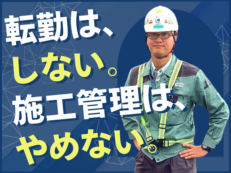 仕事内容 ―――――――――――――――― 施工管理を続けたい。 けれど、転勤や過度な残業には もう疲れた。 ──そんな技術者のためにあるのが、 NIPPOの「地域社員」という働き方です。 - 【転勤は、しない。】 地域社員としての勤務だから、 勤務地は、あなたが選んだエリアの出張所。 関東エリアの中にも いくつもの出張所があり、 通勤しやすい場所を選んでいただけます。 転勤も長期出張もなく、担当するのは 通える範囲の現場だけ。 「暮らしたい場所」と 「働く場所」を分けずに、 腰を据えてキャリアを続けられます。 【施工管理は、やめない。】 担当するのは小~中規模の民間工事。 工場や物流施設、駐車場、外構、 排水、舗装など、 案件の幅が広く飽きがこない。 さらに、米軍基地の工事や テストコースの舗装、県道工事など、 NIPPOだからこそ経験できる “珍しい現場”にも挑戦できます。 施工管理を続けながら、 新しいやりがいを見つけられます。 【生活は、犠牲にしない。】 残業は月45時間程度に収まるよう、 勤怠システムやノー残業デーを運用。 「80時間残業が当たり前」 だった環境から転職してきた社員も、 今では毎日夕飯の時間に 帰れるようになりました。 ムリを重ねる働き方ではなく、 暮らしを守りながら技術を発揮できます。 【技術者の誇りは、やめない。】 大手の安定基盤がありながらも、 入社3ヶ月で現場を任されるなど 裁量を与える文化があります。 情報共有と分業体制が整っているため、 一人で抱え込むこともなく、 安心して挑戦できます。 「歯車になる施工管理」ではなく、 「任される技術者」として 誇りを持って取り組んでください。 【成長を止めることは、しない。】 配属先には20代・30代の社員も多く、 40代の中堅と一緒に フランクな関係で 現場を動かしています。 「大手=大ベテランばかり」 のイメージとは違い、 若手が裁量を持って活躍している環境。 世代を超えて意見交換できるから、 学びも多く成長が加速します。 - 無理は、しない。挑戦は、やめない。 あなたの好きな街で、 キャリアを続けませんか。 ―――――――――――――――― ~仕事内容補足~ ✅現場 担当エリアは車で1時間圏内。 民間工事が中心で、工期は1~3ヶ月、 長くても8~10ヶ月程度です。 ✅事務 公共工事に比べて書類作成は少なめ。 事務スタッフのサポートもあるので 無理なく進められます。