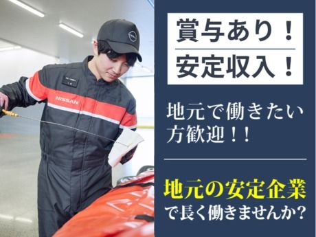 仕事内容 \【日産正規ディーラー】安定して長く働けます / *安心安定* 日産自動車の正規販売店 *地元密着* 住み慣れた地元に根づいて働ける *快適環境* スポットクーラー・ヒーター完備 「安定企業で働きたい」「地元で長く働きたい」 そんな思いをお持ちの方は ぜひ、お気軽にお問合せください。 \ 日産自動車整備士の主な仕事内容 / ・自動車整備 ・車検 ・定期点検 ・点検結果の報告やフォロー ・書類作成 ・部品仕分け など ブランクのある方の場合、最初は軽作業や点検業務からやって頂きます。 慣れてきたら車検など上記の整備全般をお任せします。 \ 当社の魅力POINTはココ / 20代・30代が活躍中。先輩がしっかりサポート、 フォローしあう風土があります。 社内、エリア別、全国統一の表彰機会も多数。 個人のスキルアップによって、店舗や会社の業績UP! 店舗インセンティブで還元!賞与、給与に反映します。 \ 店舗のイメージ動画を是非ご覧ください! / YouTube動画URL https://youtu.be/PAWvD8qG4Yw ※各店舗により異なりますのでご了承ください。