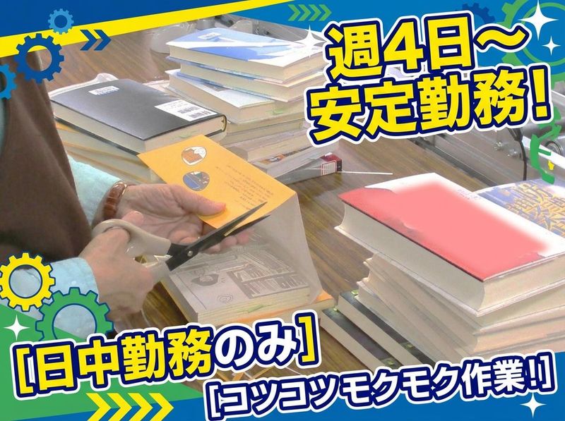 仕事内容 ╭⋟─────────────╮ \男性スタッフ活躍中!/ ✨日中勤務で安定収入!✨ ✨週4日~しっかり働ける!✨ ✨適度に体を動かす倉庫作業✨ ╰─────────────⋞╯ 図書館に並ぶ書籍の 出荷作業をお任せします。 流れてくる書籍をダンボールに 梱包していくシンプルなお仕事です。 ■具体的なお仕事内容  ̄ ̄V ̄ ̄ ̄ ̄ ̄ ̄ ̄ ̄ ̄ ̄ ̄ ̄ ̄ ̄ ̄ ̄ ̄ ・書籍の確認 ・ダンボールの組み立て ・書籍の梱包作業 ・出荷準備 作業は決まった手順で進めるため、 未経験の方でもすぐに覚えられます! ■この仕事のポイント  ̄ ̄V ̄ ̄ ̄ ̄ ̄ ̄ ̄ ̄ ̄ ̄ ̄ ̄ ̄ ̄ ̄ ̄ ̄ ✅未経験でも始めやすい 難しい作業はなく、 シンプルな繰り返し作業が中心です。 ✅日中のみで働きやすい 10時~17時の勤務なので、 生活リズムも安定◎ ✅週4日~しっかり働ける 安定したシフトで収入も 確保しやすい環境です。 ✅空調完備で快適 倉庫内は冷暖房完備! 季節問わず働きやすい♪ ✅適度に体を動かせる 立ち作業が中心で、 軽い運動感覚で働けます! ჻჻჻჻჻჻჻჻჻჻჻჻჻჻჻჻჻჻჻჻჻჻჻჻჻჻჻჻჻჻჻჻჻჻჻ 特別な経験や資格は必要ありません。 先輩スタッフが丁寧に サポートするので安心です◎ 少しでも気になった方は、 ぜひご応募ください!
