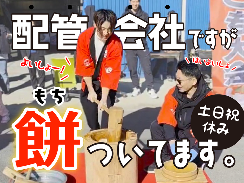 仕事内容 【この求人のポイント】 ✅実働7時間&早上がり多め! ✅土日祝休み ✅行政の依頼で安定感バツグン ✅入社後資格取得制度あり *-*-*-*-*-*-*-*-*-*-*-* ■■■事業拡大に向けた社員募集■■■ 見ての通り、うちは 道路下の排水設備、屋内の排水設備を 修繕・補修しています。 でも、年末は現場じゃなくて ”臼(うす)”の前に集合。 ▷社内イベント、もちつき大会! 社員も、その家族も、子どもたちも。 みんなでペッタンペッタンお餅をついて、 つきたてを頬張る。 「今年もお疲れさま!」 「また来年もよろしく!」って笑い合う。 仕事は大事。 でも、自分や家族との時間はもっと大事。 そんな当たり前のことを、 この会社では「当たり前」にしています。 *-*-*-*-*-*-*-*-*-*-*-* 【派手じゃないけど、なくならない仕事】 配管の老朽化対策は、 今まさに国や自治体が 本気で取り組んでいる分野。 東京都の予算も増えていて、 おかげさまで業績は ずっと右肩上がりです。 「自分にできるかな?」なんて 不安はいりません。 作業から管理や営業のまとめ役も 目指せる環境です。 世の中に必要とされ続ける技術を、 この先ずっと自分の武器に していきませんか? ┏━━━━━━━┓ | お仕事詳細 | ┗━━━━━━━┛ <排水管の修繕工事・更生工事> ライフラインを掘らずに直す 「管更生」や「洗浄」がメインです。 ⭐公共案件: 下水道施設の調査~工事 ⭐民間案件: マンション等の排水トラップ、 屋上通気管の更生工事 体制▶2〜7名のチーム制 女性スタッフも活躍中✨ 勤務エリア▶関東近郊のみ 仕事の依頼は大手親会社の 依頼がメイン! 東京都の案件で元請受注もあります。 \✅未経験者歓迎!/ 先輩がイチからしっかり教えます! <1日の流れ> ●07:30 … 草加置き場集合 (獨協大学前・草加駅までお迎え!) ●09:00 … 現場スタート (小休憩・お昼休憩アリ) ●14:00〜15:00 … 終了!お疲れ様でした! ※草加資材置き場住所 埼玉県草加市北谷2‐21‐7 ………………………………………………… 【朝が早い分、終わるのも早い】 有休を使わずに免許更新。 平日の空いてる映画館で最新作を観る。 「夕飯まで何しようかな〜」なんて 贅沢な悩み、うちなら味わえます。 【現場の雰囲気は、たぶん想像より緩め】 正直、うちのスタッフは ちょっと派手に見えるかもしれません。 でも、困っていると「お、これはな!」と 自然に体が動く人ばかり。 現場では、女性スタッフも大活躍! (画像3枚目みたいに) ライトで照らしたり調査したり。 みんながフラットに笑い合える。 そんなのも、 うちでは当たり前の光景です。 ………………………………………………… ╭━━━━━━━━━╮ 餅つきに全力なのも、 理由があります。 ╰━v━━━━━━━╯ 配管の寿命は40〜50年。 私たちが直さないと、 街の「当たり前」は守れません。 ずっと必要とされる仕事だから、 業績は安定。 だからこそ、 働く仲間の居心地も大切にしています。 できることが増えれば、 任される役割も、立場も一段ずつ上へ。 現場で終わらず、 管理やまとめ役を目指せる道があります。 ひとつ大きな仕事を終えたら、 会社のお金でパーッと打ち上げ! 2次会まで会社が負担しちゃいます。 そんな日々を一緒に積み上げた先で 来年の年末、 「よいしょー!」って 一緒に餅をつけたらうれしいです。