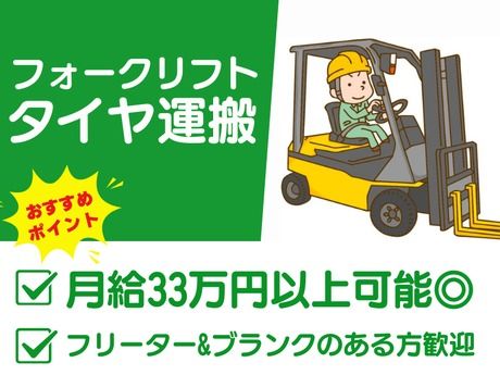 【★月給33万円以上★リフト作業メイン!】フォークリフトでタイヤ運搬♪高時給&残業で稼げる◎