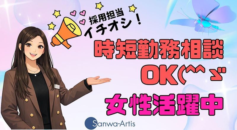 仕事内容 ✅座り作業メイン ✅冷暖房完備 ✅長期休暇あり ✅時短勤務相談可 ━━━━━━━━━━━━━━━ 【お仕事内容】 ━━━━━━━━━━━━━━━ 紙をみながらもくもくと 小物パーツの組立てをお願いしてます! ✅具体的には…  ̄ ̄ ̄ ̄ ̄ ̄ ̄ ̄ ■決まった箇所へキュッキュとネジ締め ■シールを貼る ■コネクターをカチッとつなぐ 簡単な作業からスタート! 「雰囲気が気になる」という方は、 工場見学がありますので 一緒に見に行きましょう◎ 皆さまにお会いできる事を サンワアルティス株式会社スタッフ一同、 心より楽しみにお待ちしております!