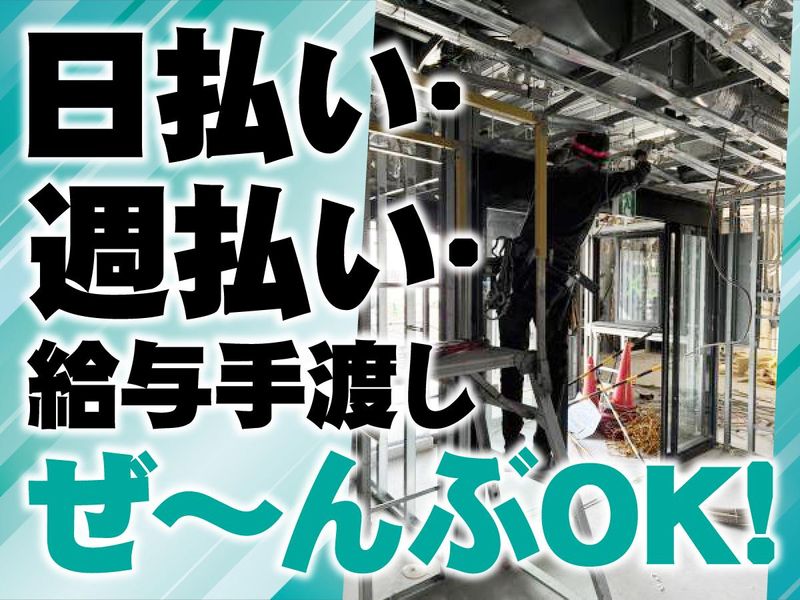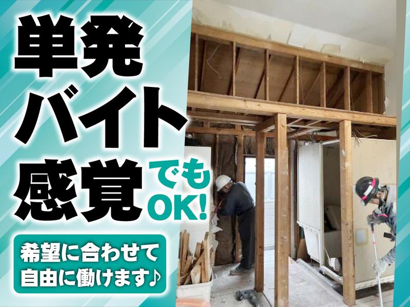 求めている人材 ✅とにかくすぐに稼ぎたい ✅家族を養うお金が必要 ✅でも家族の時間も大事にしたい ✅未経験から稼げる技術が欲しい ✅本業の足しに稼ぎたい などなど 応募の理由は何でもOK! 未経験歓迎!無資格歓迎! 中卒・高卒歓迎! 経験や資格、学歴など まったく気にしません! 挨拶や返事など人として 当たり前のことができればOK。 実際に現在活躍中のスタッフは 全員が未経験からのスタート。 応募してくれた方は 不安なく始められるよう しっかりサポートするので、 お気軽にご連絡してください! \\こんな方にオススメ// ・一生稼げる仕事を探している ・安定して稼ぎたい ・本業の足しに働きたい ・メリハリつけて働きたい ・頑張りを評価してもらえる職場が良い ・独立や昇進に憧れている ・アルバイト・パートから ゆくゆくは正社員を目指したい 希望の収入や私生活に合わせて 働くことができるので、 20歳の若手から30代・40代と 年齢やライフスタイルが様々な スタッフが無理なく続けています! 「内装解体」が初めてでも 建設現場作業スタッフや大工、 とび職、土木工事、左官工など 現場作業スタッフ経験がある方は 経験を活かして働けます!