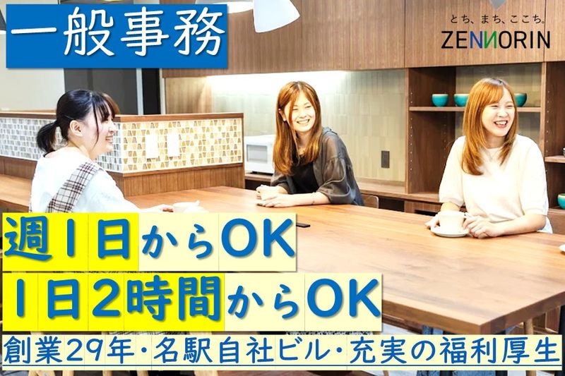 【仕事内容】 週1日からOK!1日2時間からOK!(もちろん、週5日のフルタイムもOKです) 名古屋駅から徒歩圏内の新しいオフィスの不動産・建築会社のパート・一般事務募集。 2022年6月に建築した名駅本社ビルでの勤務です。 ブランクある方歓迎!異業種からの転職歓迎!不動産や建築業界からの転職ももちろん大歓迎です! ■具体的な仕事内容 パソコンスキルや文章力、コミュニケーションスキルを活かした事務全般をお任せいたします。 ・契約書や提案資料、その他書類の作成 ※Word・Excelを使用した書類作成(主に既成のフォーマットを使用) ※営業が接客したお客様への手紙の作成など ・ホームページやブログ・SNSの更新 ※当社ホームページの更新(分譲地情報や採用情報などの新着ニュースの更新など) ※当社ブログ「全農林ジャーナル」の更新 ・電話対応や来客応接 ※ホームページや広告などからお問合せいただいたお客様の電話応対や来客応接 ※内覧会にご来場いただいたお客様へお茶の給仕などの接客対応 など ●全農林について 全農林は1996年6月創業、“みなさまの信頼と安心のパートナーとなる”をモットーに、 総合不動産デベロッパーとして宅地分譲事業および戸建住宅・ビルなどの賃貸・住宅事業を愛知県・岐阜県を中心に展開しています。 世代を越えて「ここが私たちの地元」と呼べる街を、地域の皆様と一緒に創っています。 創業以来順調に業績を伸ばし、2022年6月名古屋駅に本社ビル(自社ビル)を建築しました。 先輩スタッフは業界未経験からスタートしている方もたくさんいます。 お家づくりは営業や現場監督、職人さんだけではできません。 それを裏で支えてくれる、土地を仕入れる人や見積もりを作る人、設計をする人など様々な方の協力があって、出来上がります。 住宅は一生に一度と言われるお買いもの。 お客様は30代40代の方が多く、その方々に楽しく気持ちよく、滞りないように打ち合わせ、お引き渡しできるようサポートしてほしいと思っています。 一生に一度のお家づくりを「事務」という立場で支えてくれる人を募集しています。 まずはお話し聞いてみませんか? ご応募お待ちしております。 【求人ID-ZR3】