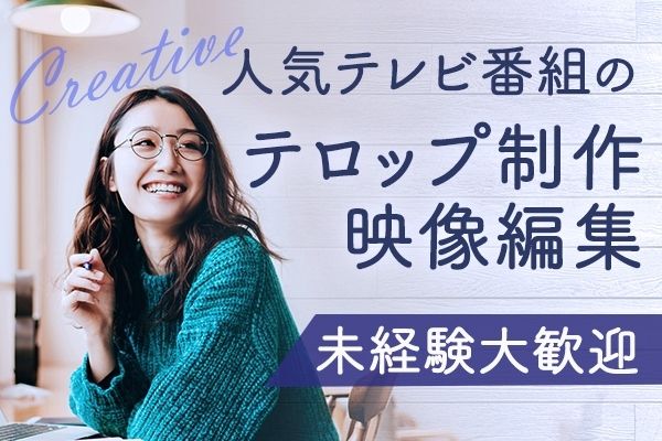 タイトル 【好きを仕事にしよう!】人気トークバラエティの映像編集 職種 テロップ制作・クリエイター 【好きを仕事にしよう!】人気トークバラエティの映像編集 雇用形態 派遣社員 仕事内容 ▼編集(ED/オペレーター) *・。*・。*・。*・。*・。*・*・。*・。*・。 \人気テレビ番組や有名配信の裏方サポート/ ☆ 未経験OK!動画クリエイター募集 ☆ *・。*・。*・。*・。*・。*・*・。*・。*・。 あなたの「好きなこと」「得意なこと」を仕事にしませんか? 未経験でも大丈夫♪ 楽しく学びながら編集スキルが積めます! 【仕事内容】 テロップの制作や映像編集をお任せします! 扱うコンテンツは、 ★現在放送中の人気テレビ番組(バラエティ・NEWS・情報・ドキュメンタリーなど多岐) ★有名YouTubeチャンネルや、大手企業のネット広告 など! また、新番組の立ち上げに参加できるケースもあります◎ <具体的な業務内容> ・テロップデータの作成 ・収録テープの受け渡し ・シーン差し替えに関する調整 など <入社後の流れ> 始めは簡単なものからお任せし、少しずつ自分で考えながら作成することにチャレンジ! 慣れてきたら、映像を確認しながら、完成させるためのテロップや調整などを行っていただきます。 編集に必要なスキルは事前研修で学べますので、イチから映像の仕事を始めたい方も安心してください! 《お仕事のここが楽しい?》 世の中に放送される前の、最新情報がチェックできます! 編集したものが実際の番組となって公開されたときの喜びはひとしお♪ 自分の手で番組に“色”を足していけるので、やりがいや面白さをしっかり感じられるお仕事です! 《有名人の素性が垣間見れる♪》 編集する素材に映っている方々は、 有名アイドル・芸人・アーティスト・インフルエンサーなど普段会えない人ばかり! 編集前の映像を扱うので、テレビで映らない仕草や表情も見れちゃうかも♪ そういったワクワクも、編集のお仕事の魅力です! 《イイなと思ったらキャリアアップもできる?》 先輩たちも未経験から始めた人ばかりなので、経験などは一切関係ありません! 経験を積んで3年でオペレーターになった先輩もいます。 また、ADやバックオフィス系などにキャリアチェンジも可能◎ 興味が湧いた時は、いつでも他職種にチャレンジできる環境です! 募集の背景 世の中ではテレビ離れが進んでいると言われていますが、実は「見てないけどテレビはつけている」という人は多いです。 なんとなくつけていた番組が面白くて見入ったという経験をしたことってありますよね。 テロップ制作は、番組をより分かりやすく、より面白くするために欠かせない大事な仕事です。 未経験から始められるよう研修制度をご用意していますので、「やってみたい」という方を歓迎します! ※2026年3月卒業予定の新卒採用エントリーは弊社HPの『新卒採用』より内容をご確認お願いいたします。