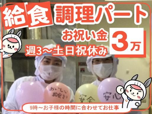 【江東区東砂・パート】週3日~/新年度からのスタートもOK/Web面接対応可/土日祝休み 学校の中にある給食室で、子どもたちに「安全で美味しい給食」を提供するお仕事です。 基本的に平日のみで土日祝休!長期休暇も学校のスケジュールと同じなので働きやすい勤務です♪ 「ごちそうさま」「おいしかった」と子どもたちから声をかけてもらえるなど、やりがい! ○プライベートも大切にできるワークライフバランスの取れた働き方 □東京都内受託No1、都内中心に220ヵ所超える給食サービスを提供 □従業員の89%が女性→子育てへの理解があります。 □20代~50代の主婦・しゅふが幅広く活躍中♪ □給食調理が初めて、ブランクがある方も大歓迎です◎