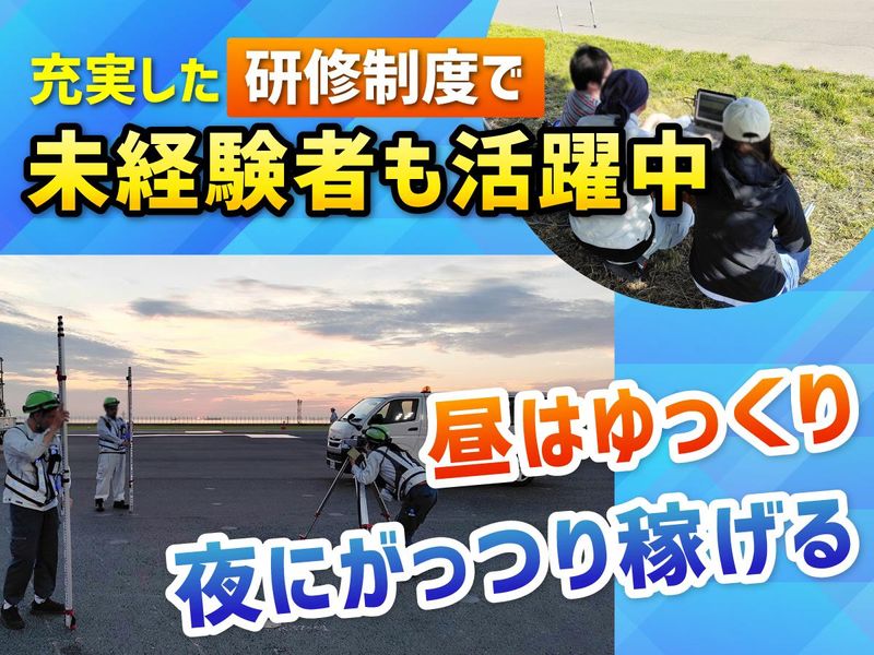 仕事内容 \羽田空港関係者エリア内で働くレア求人/ 普段は入れないエリアで夜間にひっそりお仕事! 「空港や飛行機が好き、近くで見てみたい!」 「将来は航空関係の仕事に就きたい」 「非日常な空間で働きたい」 こんな方々を歓迎しております! 空港内で働いてみたいけど 空港内勤務ができる募集の多くは 経験や資格、知識が必要なものばかり… 様々な募集を見てそう思っている方必見! 今回の募集は 無資格・未経験・無知識からスタートできるレア案件です! 研修制度も充実! 給与も日給+夜勤手当で1万8500円~の好待遇✨ 「いつかやってみたい」をかなえるタイミングは今だ! ―――― 今回の募集は… 羽田空港の滑走路・誘導路にて 工事作業に伴う地面の隆起を測定して 決められた範囲内に収まるかどうかを確認 データをまとめるお仕事です。 ―――― ✅【夜の空港内で働けるレア案件】 「空港内で働きたい!」 「飛行機の近くで働きたい!」 「夜の空港ってワクワクする!」 なんて理由でも、もちろんOK! ✅【羽田空港の裏側に触れるお仕事】 普段立ち入れない空港の制限区域で 作業するレアなお仕事です。 まだ飛行機が動いている時間帯に、 離着陸を間近で見ることも。 空港ならではの臨場感を 感じられるひとときです。 仕事終わりには、 朝焼けに照らされる滑走路を見る瞬間も。 夜勤ならではの体験が待っています。 ✅【短期も長期もOK】 基本約半年の短期現場ですが 続けたいと感じてくださった方には 月/4万円の支援金を支給し 次回現場にも入っていただきます ✅【キャリアップを視野に働く!】 案件終了後当社での正社員雇用や 大手ゼネコン企業への転職や出向の実績あり! 弊社での経験を活かして、ゼネコンへの転職、 出向して施工管理での勤務を行う方や 土地家屋調査士事務所で働いている方など様々です ✅【日給保障あり】 早く終わっても日給全額保証! ✅【実働短め】 指定された8時間のシフトの内 実際に現場にいるのは約5時間ほど。 そのほかは移動と準備を除けば待機時間で 体に負担なく稼げます! ✅【月給換算46万円越えも可能】 日給1万5000円+夜勤手当3,500円 その他も諸手当ありの高日給! 実働短め&早上がりでも日給保証 ✅【車の運転ができる方優遇】 1日単位で運転手当を支給します! 但し、あくまでも優遇ですので、 運転できない方も是非ご応募ください! ✅【残業なし】 既定の時間になったらみんなで帰宅! 残業よりも早上がりのほうが 多めな職場です。 ✅【未経験大歓迎】 20代~40代の男性・女性ともに活躍中! 経験が浅い方や 未経験の方も大歓迎です! ✅【空港の安全を支える公共性の高い業務】 空港の制限区域内での作業を含むため、 過去の犯歴について自己申告書への 記入が必要です。 内容によっては当局の判断により、 立入許可が得られない場合があります。 *――――――――――――――――――* <<契約期間>> 6月中旬~12月(研修は6月中旬から開始予定) ◆担当業務 ・滑走路に機材の設置 ・タッチパネルの操作 ・データ入力 現場は大人数で集まって協力しながら進めます。 作業経験が豊富な方から 全くの未経験の方までさまざま! 助けてくれるスタッフが近くにいるので 未経験の方も是非飛び込んでみてくださいね! 期間が決まっているお仕事なので、 短期でしっかり稼げます♪ また、契約期間終了後の数か月後には 新規現場が始まります。 引き続き業務を行う方には、 待機期間の支度金制度があります! →40,000/月(契約満了が条件、 最大5か月間支給) <活かせるスキル> PC入力作業もあるため、 現場職のご経験がない方もタイピングスキルなどを活かせます! もちろん測量の経験がある方や 計測作業の経験がある方は即戦力です。 未経験の業界・未知の業界 という方が大半だと思いますが 未経験からスタートした社員が多いため 研修や指導は手厚いです。 ご自身のスキルを活かせる場所で お仕事をしてみませんか。 *――――――――――――――――――* ⭐1日の流れ⭐ (昨年度実績) 21:00|出勤・準備(羽田空港の事務所) 羽田空港近くの事務所に出勤し、 業務に必要な機材の準備を始めます。 全員が集合した後に、現場責任者が 当日の作業内容を説明します。 空港のセキュリティゲートを通過し、 作業現場近くの待機所へ移動します 22:00以降|朝礼・待機(空港内待機所) 待機所でラジオ体操を含む朝礼を実施 作業開始できる時刻になるまでは、 待機して準備を整えます。 待機時間中はスマホや読書、軽食など 待機所内や車内で自由に過ごせます。 0:00|航空機の運航が停止 航空機の離着陸が停止するこのタイミングで、 作業が開始できるようになります。 0:30|作業開始(空港内) 工事により地面が隆起するため、 それが安全基準内に収まるように 専用の測定機で計測・記録します。 5:00|作業終了 原則、朝5時までに作業終了します。 状況によりますが、早ければ3時頃に 計測作業が終わることもあります。 航空機の運航が再開されるため、 時間外の作業は出来ません