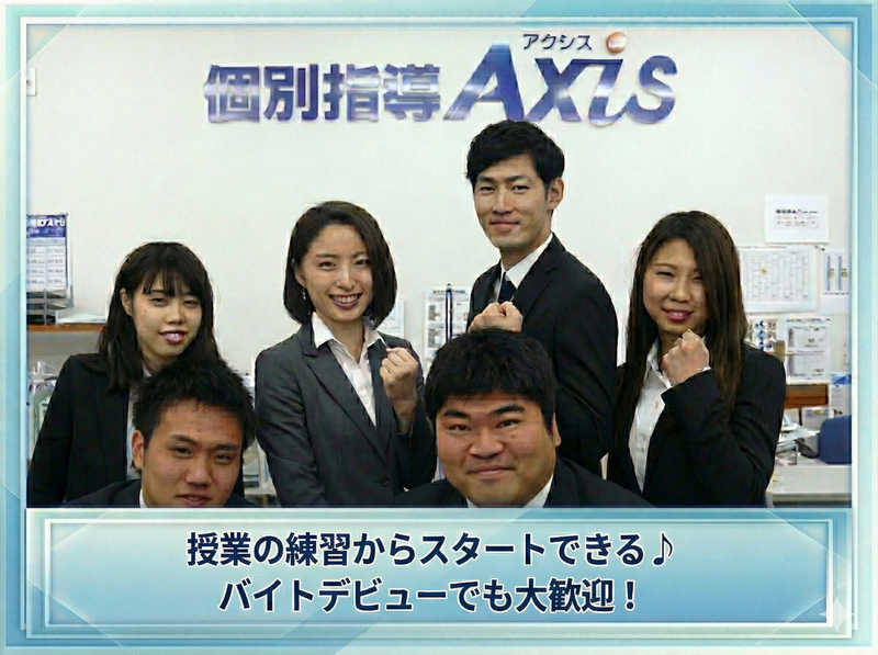求めている人材 <こんな方に特におススメです> ・「教える」事が楽しめる方 …「個別指導」ならでは! 近い距離で丁寧に授業ができるので、 やりがいや楽しみもバッチリ♪ ・稼ぐだけじゃなく、合わせて自己成長もしたい方 学生生活!就活!将来!Axisのアルバイトはどこでも役立ちます! 例えばゼミでのプレゼン、就活での面接など♪ 社会に出た後も「教える(伝える)」という場面には必ず出会うため、 あなたの人生にとって役立つ事間違いなし! ・幅広い交友関係を作りたい方 授業中は基本的に1人で教えるものの、 つながりは多く教室長や先輩はもちろん、講師仲間もたくさんできます♪ 授業に関する話や、異なる学校の情報など、公私ともに充実しますよ♪ <学生・社会人・主婦(夫)さん活躍中!> ※教員免許をお持ちの方歓迎! ※講師など指導経験がある方もぜひ! *経験不問/未経験者歓迎・第二新卒歓迎 *資格不問/無資格歓迎・ブランク歓迎 *学歴不問/中卒・高校中退・高卒もOK! *Wワーク歓迎(副業OK) *ハローワークでお探しの方も歓迎 *転勤なし *U・Iターン歓迎 ★家庭教師や学習塾、公文、塾などの勤務経験がある方は スムーズに慣れて頂けるかと思います!