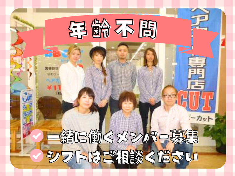 仕事内容 ✦・┈┈┈┈┈┈┈┈ ┈┈┈┈┈┈┈┈・✦ <<<今が応募のチャンス>>> ✨入社祝金10万円✨ 環境を変えて楽しく働きませんか? 女性も入りやすい優しい雰囲気のお店です。 残業もほとんどないので、 負担が少なくオススメです! ⭐wワークも可能⭐ ✦・┈┈┈┈┈┈┈┈ ┈┈┈┈┈┈┈┈・✦ ⏩カット専門店の為、 シャンプーはありません! 手荒れの心配も無用☆彡 お客様は平日50名 土日祝100名以上 カット技術も向上できる環境です◎ ⏩店舗は商業施設内にあるので、 トイレ清掃や残業もありません! ⏩家族手当(お子様の人数×1500円)や、 賞与・カット人数手当など 頑張りはしっかり評価します! ━━━━━━━━━━━━ ✅充実の待遇 ━━━━━━━━━━━━ *能力はしっかり給与に反映します! *昇給・カット歩合制度あり *入社祝い金10万円支給 *社員旅行(R5年宮古島、R7年台湾) *交通費規定支給 (自宅~店舗迄の距離の往復km×15円) *アルバイト採用も随時募集 (※アルバイトの場合は採用5万円支給) ━━━━━━━━━━━━ ✅スタッフインタビュー ━━━━━━━━━━━━ ▶子育てが一段落して社会復帰した主婦さん ブランクがあって心配だったけど、 働きやすい環境ですぐに慣れました♪ 一人あたりの時間も短いので、 腰痛に悩まされることも少なくなりました! ▶第二のキャリアのブランク復帰さん 一度は美容師の道を諦めましたが、 ここはカットだけで、シャンプーがないから 手荒れしないのが、嬉しいです。 「私にできるかな?」と迷っていましたが、 勇気を出して戻ってきて本当に良かったです! がっつり稼ぎたいという方、 ブランク復帰の方、 カット技術を上げたいという方、 まずはお話を聞きに来てみませんか? ご応募お待ちしております! ┏◆━……───────……━◆┓ ⭐お電話での応募も大歓迎⭐ ☎:080-3659-8860(採用担当宛) ┗◆━……───────……━◆┛