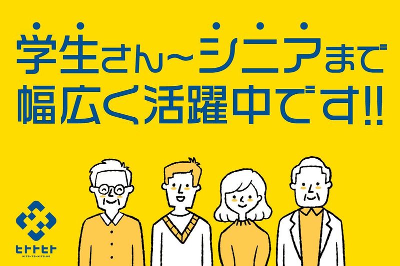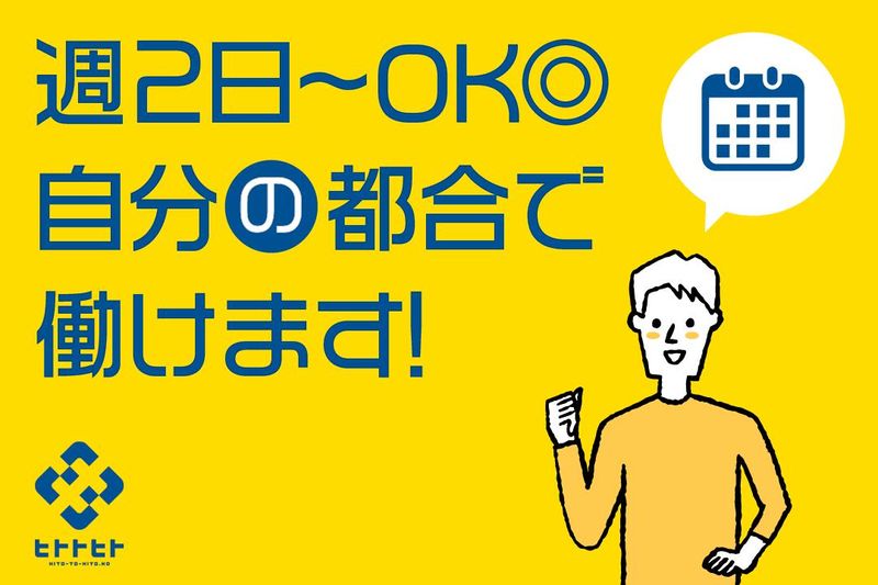 仕事内容 ~ヒトトヒト株式会社で働くメリット~ ■週2・3日~勤務OK◎シフトは自由自在 ■「土日のみ」「平日のみ」もOK! ■手厚い研修制度で安心して警備デビュー *ー* 大型書店内にて巡回業務がメインの警備のお仕事です。 保安業務ではないのであくまで予防に努めるために 制服警備員での巡回のお仕事です。 警備未経験の方も大歓迎◎ 業務開始前にしっかりと研修するので 安心してください。 *ー* <無理なく働ける!無理なく稼げる!> 週2・3日~勤務OK! 残業はほぼなく、シフトも柔軟対応◎ 希望の日程で働けるので、 プライベート重視派の方にもピッタリです。 「とりあえず早く稼ぎたい」 …そんな方は即日勤務もOK! *ー* <未経験OK!中高年の方活躍中!> 20代~60代の幅広い世代活躍中! 新たなスタートがきれる、未経験OKのお仕事です。 異業種から転職された方も多く活躍しています! 「定年後に孫にお小遣いをあげたくて…」 「健康の為に体を動かそうかな…」など 始めるきっかけはイロイロです。 *ー* こんな働き方も… *会社員Aさん 平日は本業で会社員、副業として日勤で休日勤務 *大学生Bさん 授業が無い平日に3日だけ勤務。 長期休暇中はシフトを増やしてお小遣い稼ぎ!