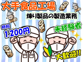 仕事内容 「工場勤務は初めてで不安…」 そんな方でも安心して働ける、 大手食品工場での製造スタッフ募集です。 お任せするのは練り製品(ちくわ)などの製造。 具体的には、以下の作業をお願いします。 ・原料の計量や仕込み補助 ・成形や加工ラインでの作業 ・完成品のチェックや包装 など 入社後は先輩スタッフがしっかり指導。 未経験からでも無理なくスタートでき、 安心してスキルを身につけられます。 工場内は清潔に保たれており、 立ち仕事中心ですが体への負担は少なめ。 休憩室や食堂もあり、働きやすい環境です。 「モクモク作業が好き」 「食品に関わる仕事をしてみたい」 「安定した環境で長く働きたい」 そんな方におすすめのお仕事です。 働きながら食品製造の知識や技術を習得でき、 安定収入を得ながら成長できる環境です。 未経験歓迎・ブランクOKで、 新しい一歩を踏み出したい方を応援します。