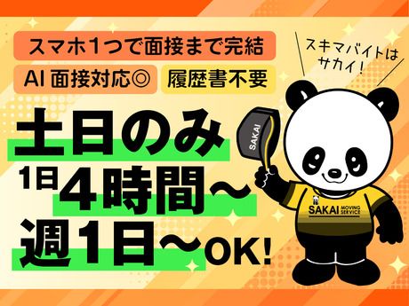 選考プロセス \AI面接実施中/ AI面接なら24時間いつでもどこでも面接可能◎ 今日明日なら時間が空いている…という方もOK! \対面やWEB面接も受付中◎/ ご希望の方は、応募情報を確認後、 面接日程の調整で 折り返しご連絡いたします! まずはざっくばらんにお話しましょう! ※最短当日面接も応相談◎ 【問合せ先について】 問合せ先:050-3495-5823 引越のサカイは初バイトを応援! 面接マナー等も気にしないでOK♪ 電話応募は、代表電話番号での応募は 受け付けておりませんので、 ご注意ください。 応募方法 応募ボタンをタップし、 表示された応募フォームへ 必要事項を入力してご送信ください。 【電話でのご応募】 050-3495-5823(採用担当) 受付時間/9:00~18:00