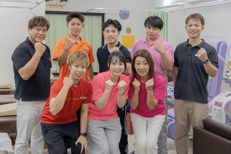 職場環境 現在は社員4名、学生アルバイト7名、Wワークスタッフ2名の計7名が在籍しており、半数が女性。分からないこともすぐに聞ける風通しの良い環境で、休憩中は年齢関係なく和気あいあいとしています。お客様は、身体の痛みや産後の骨盤矯正で来院される方が多いです。