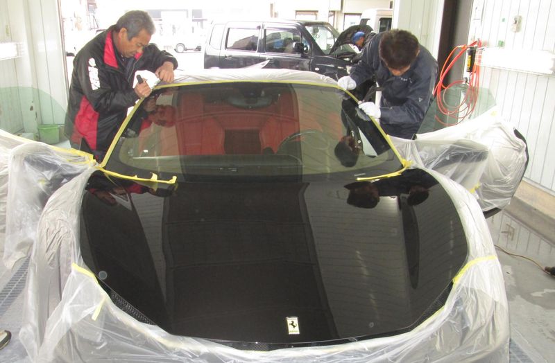 自動車ガラスの修理スタッフ
