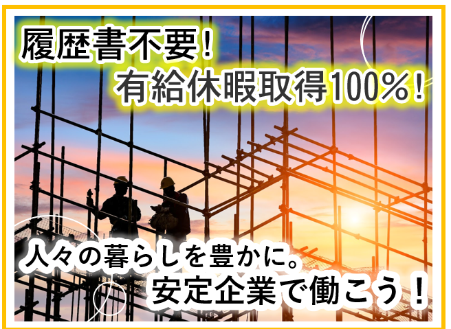 求めている人材 ・未経験歓迎 ・学歴不問 =================== ⭐一番は“人柄重視”の採用です!⭐ 現場作業未経験の方も活躍中◎ =================== <歓迎条件>  ̄ ̄ ̄ ̄ ̄ ̄ ̄ ̄ ̄ ̄ ̄ ✅準中型免許 <こんな方活躍中>  ̄ ̄ ̄ ̄ ̄ ̄ ̄ ̄ ̄ ̄ ̄ ・責任感をもって取り組める方 ・異業種から新しいことにチャレンジしたい方 ・現場経験のある方 ・建設関係で働きたい方 ・仕事も家族も大切にしたい方 ・足場組立経験者 ・体を動かす仕事が好きな方 ・とにかく稼ぎたい方 ・仲間と協力するのが得意な方 。・。・。・。・。・。・。・。・。・ \ こんな経験活かせます! / ・現場作業員 ・足場組立 ・土木作業員 ・建設業 ・大工 ・土木 ・解体作業員工 ・工事 ・足場 ・建設作業員 ・鳶 ・足場工 上記スキル・経験をお持ちの方は その力を活かして 活躍できる環境がここにあります!! ▽未経験スタート大歓迎! 現在活躍中のスタッフの 半数以上が未経験スタート! 学歴・職歴・ブランク一切不問です!
