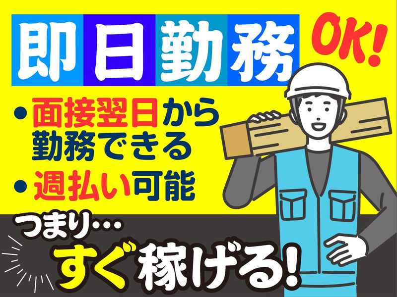 仕事内容 \未経験大歓迎✨/ 「体を動かす仕事がしたい」 「すぐに働ける仕事がしたい」 そんなあなたにピッタリのお仕事です♪ ✅週1日~OK ✅1日4時間~OK(応相談) ✅1日3現場担当で収入UP ✅週4日~勤務でガッツリ稼ぐのもOK ✅早く現場が終わっても日給分は全額保障 ✅面接の翌日の勤務開始もOK ✅直行直帰OK&交通費全額支給 ✅日払い・週払いOK(規定あり) ✅遠方手当あり ✅交通費支給全額 ★平日の週1日~勤務OK! ★午前中だけ勤務OK! 午前中だけで、7,000円貰えます! ★短期OK!最短3日~勤務可能! \軽作業がメインです✨/ 「工事現場でモノを運ぶ」 「倉庫でモノを運ぶ」 担当する案件によりますが、 仕事は上記のいずれかです! 【現場】 現場は高島平駅周辺 もちろん現場へは直行OK! 毎日違った現場に行けるので、気分転換にも♪ ⇒Point 仕事は基本的にやり仕舞いなので、 早く終わっても1現場給は保証されます。 1現場当たり平均3時間程度で終わるので、時給換算で平均2,000円以上! 30分以下で終わる事もあります。こんなオイシイ仕事なかなか無いと思ってます。 ⇒Point 2人1組、または3人1組のチームで 仕事を行うのでご安心を! 何でも遠慮なく聞いてくださいね。 \現場は都内とその近郊に多数✨/ 池袋、上野、新宿、渋谷、目黒、三軒茶屋、 中野、練馬、吉祥寺、三鷹、国分寺、 八王子、北千住、赤羽、横浜、浦和 など オープニングの案件や 単発の案件も多数あります。 続けられそうな案件だった場合、 長期に変更することも可能! お気軽にご相談ください♪ \幅広い事業を行う当社✨/ ◆工事現場への重機や資材の搬入 ◆現場での軽作業 ◆荷物の配送や倉庫での保管 ◆家のリフォームや補修 ◆車のリペア ◆引っ越し・不用品回収 など幅広い事業を展開しています! 拠点は、東京・奈良・大阪・京都にあり、 関東と関西エリアでサービスを展開♪ あなたにお任せしたい案件も多数! 安定して働くことができます。 \自由な働き方を選択できます✨/ 「明日時間があるから働ける!」 といった方は翌日働ける現場へ! ライフスタイルを大切にしながら、 ムリなく続けていただけます◎ ⇒Point ガッツリ稼ぎたい方は、 週4日~5日の勤務や 長期的に安定して働くことも可能! シフトや曜日、日数、担当現場は 相談して決めていきましょう♪