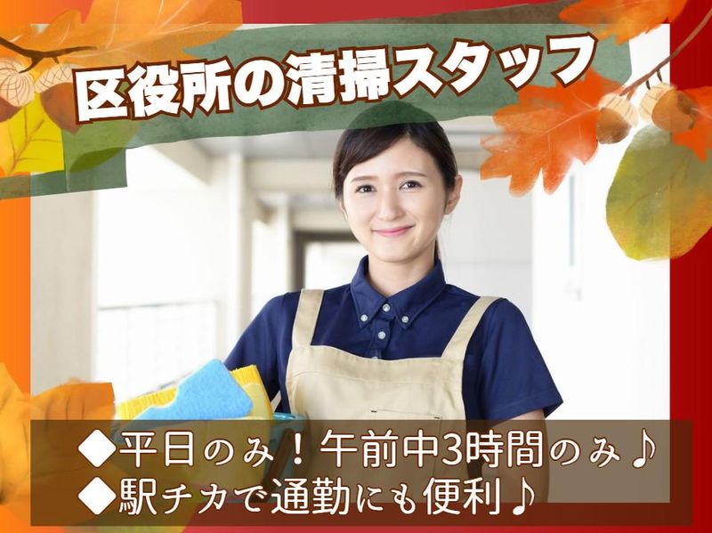 仕事内容 \朝の3時間だけ♪サクッとお仕事!/ 武蔵小杉駅から徒歩5分程度! 区役所内のカンタン清掃スタッフ募集✨ ━━━━━━━━━━━━━━━━━ ⭐おすすめポイント ✅ 6:30〜9:30の【3時間だけ】! 多少の時間調整は可能 ✅ 接客ナシのモクモク作業! 未経験の方も安心◎ ✅ 扶養内・WワークOK! 家庭や本業と両立しやすい! ✅ 月~金(平日のみ)勤務で、土日祝休み 【お仕事内容】 区役所内の清掃をお願いします。 日々のルーティンが決まっているので、 未経験でもすぐに慣れていただけます♪ <具体的には…> ・廊下や階段などの掃き・拭き清掃 ・トイレや給湯室の簡単な清掃 ・ゴミ回収など どの作業もシンプルで、 体への負担も少なめ。 朝の時間を使って、 無理なく続けられるお仕事です! ━━━━━━━━━━━━━━━━━ 【こんな方にピッタリ!】 ✅朝の時間を有効に使いたい方 ✅家事や本業の前に働きたい方 ✅人と話すよりコツコツ作業が好きな方 ✅定年後も体を動かして働きたい方 シニア世代も多数活躍中! 初めての方でも安心して始められます。 ━━━━━━━━━━━━━━━━━ 【ここが魅力!】 ⏩午前だけで1日充実♪ ⏩無理のない軽作業で長く続けやすい ⏩武蔵小杉駅から徒歩すぐで通勤ラクラク \1日3時間の“朝活ワーク”で/ \気持ちよく1日をスタート!/ \まずはお気軽にご応募ください!/