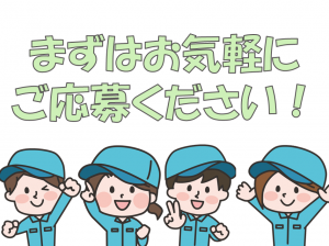 募集背景 募集区分1 仕事内容 (自動車部品の製造) ・手のひらサイズの部品の取り付け ・台車をつかった部品の補充 ・変形や変色などがないかの検査 上記のような自動車部品の製造に 関する作業をお任せします☆ ・-・ おすすめポイント! ・-・ ◇高時給1500円で残業も含めると 月収30万円以上も夢じゃない♪ ◇土日休みなのでゆっくり休めて 交代制での疲れをリセット出来る☆ ◇食堂完備&冷暖房完備で環境抜群! ◇入社教育・実践教育があるので、 未経験でも安心して始められます◎ ◇100名以上の大募集! カップル・友人同士での応募OK♪ ・-・-・-・-・-・-・-・-・ <事前の職場見学が可能です!> まずはお気軽に お問い合わせください★ ※電話での応募・問い合わせ受付中! TEL:0954-36-2386
